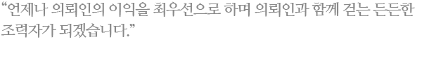 ¾ðÁ¦³ª ÀÇ·ÚÀÎÀÇ ÀÌÀÍÀ» ÃÖ¿ì¼±À¸·Î Çϸç ÀÇ·ÚÀΰú ÇÔ²² °È´Â µçµçÇÑ Á¶·ÂÀÚ°¡ µÇ°Ú½À´Ï´Ù.