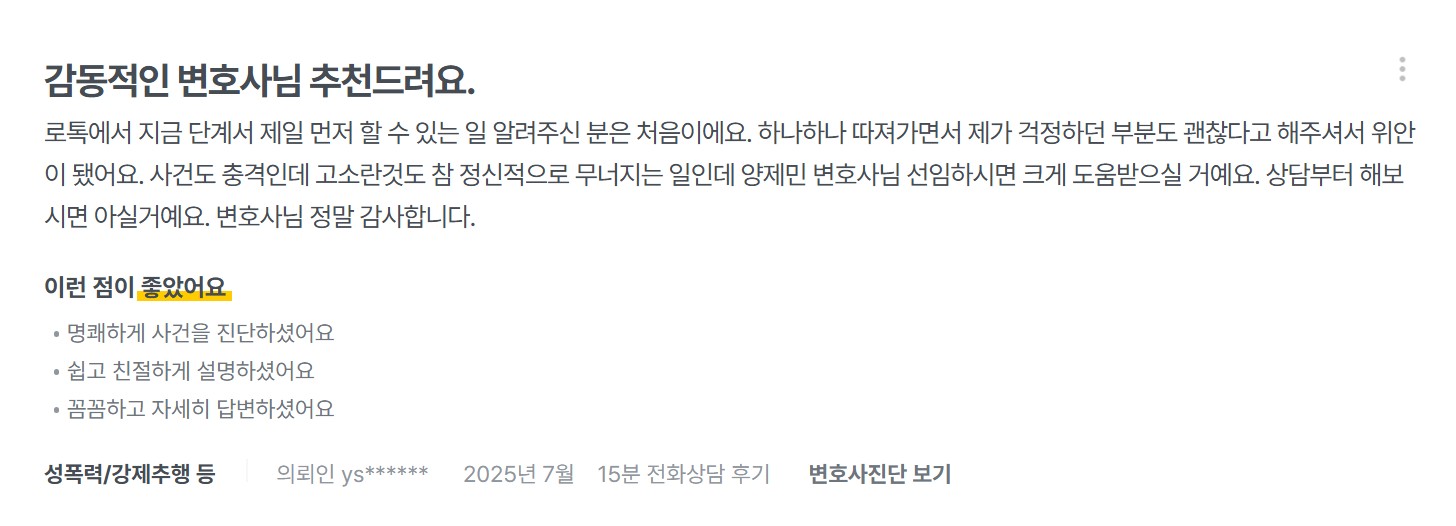 ·ÎÅå¿¡¼ Áö±Ý ´Ü°è¼ Á¦ÀÏ ¸ÕÀú ÇÒ ¼ö ÀÖ´Â ÀÏ ¾Ë·ÁÁֽŠºÐÀº óÀ½ÀÌ¿¡¿ä. ÇϳªÇϳª µûÁ®°¡¸é¼ Á¦°¡ °ÆÁ¤ÇÏ´ø ºÎºÐµµ ±¦Âú´Ù°í ÇØÁּż À§¾ÈÀÌ µÆ¾î¿ä. »ç°Çµµ Ãæ°ÝÀε¥ °í¼Ò¶õ°Íµµ Âü Á¤½ÅÀûÀ¸·Î ¹«³ÊÁö´Â ÀÏÀε¥ ¾çÁ¦¹Î º¯È£»ç´Ô ¼±ÀÓÇϽøé Å©°Ô µµ¿ò¹ÞÀ¸½Ç °Å¿¹¿ä. »ó´ãºÎÅÍ ÇØº¸½Ã¸é ¾Æ½Ç°Å¿¹¿ä. º¯È£»ç´Ô Á¤¸» °¨»çÇÕ´Ï´Ù.