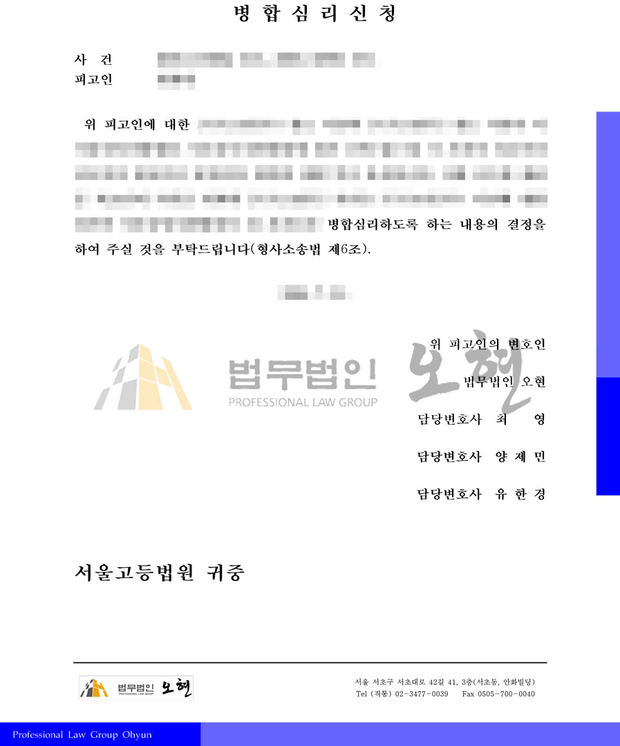 º»¹ý¹«¹ýÀÎÀº ÀÇ·ÚÀÎÀÇ ÇÇÇØÀڵ鿡°Ô º¯È£»ç°¡ Á÷Á¢ ÀüÈÅëÈ·Î ¿¬¶ôÀ» ÇÏ¿©¼ ÀÇ·ÚÀÎÀÌ ÇöÀç Áø½ÇµÇ°Ô ¹Ý¼ºÇϰí ÀÖ°í ÀÇ·ÚÀÎÀÌ °æÁ¦ÀûÀ¸·Î ¾ÆÁÖ ¾î·Á¿î »óȲ¿¡ Ã³ÇØÀÖ´Ù´Â Á¡À» ÇÇ·ÂÇÏ¸é¼ ÇÕÀǸ¦ ¼º»ç½Ã۱â À§ÇÏ¿© ÃÖ¼±ÀÇ ³ë·ÂÀ» ´ÙÇÏ¿´½À´Ï´Ù. ÇÇÇØÀÚµéÀº óÀ½¿¡´Â ÇÕÀÇ´Â Àý´ë·Î ÇÏÁö ¾Ê°Ú´Ù°í ¸»À» ÇÏ¸ç ´Ü¼û¿¡ °ÅÀýÀ» ÇÏ¿´Áö¸¸ º» ¹ý¹«¹ýÀÎ ¼Ò¼Óº¯È£»çÀÇ Áø½ÇµÇ°í ²öÁú±ä ¼³µæ ³¡¿¡ ÇÇÇØÀÚµé°ú ÇÕÀǸ¦ ÁøÇàÇÒ ¼ö ÀÖ¾ú°í °á±¹ 2½É ÀçÆÇ°úÁ¤¿¡¼´Â ÇÇÇØÀÚµé°ú ÇÕÀǰ¡ ¿Ï·á µÇ¾ú´Ù´Â Á¡À» Áß¿äÇÑ ¾çÇü»çÀ¯·Î Á¦ÃâÇÏ¿© °á±¹ ÀÇ·ÚÀÎÀÇ 1½É Çü·®¿¡¼ °¨ÇüÀ» ¹Þ¾Æ¼ ÀÇ·ÚÀÎÀÌ ÇÏ·ç¶óµµ »¡¸® »çȸ¿¡ º¹±Í ÇÒ ¼ö ÀÖµµ·Ï ÇÏ¿© ÀÇ·ÚÀÎÀÇ ÀÏ»ó»ýȰÀ» Áöų ¼ö ÀÖ¾ú½À´Ï´Ù.